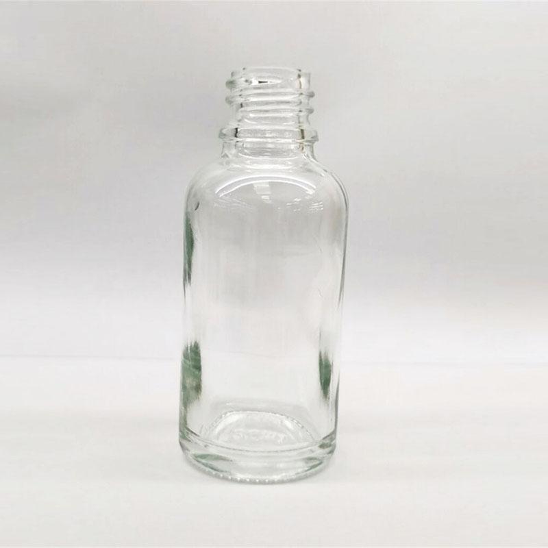 Garrafa de vidro Boston Round transparente vazia de 1 oz e 30 ml