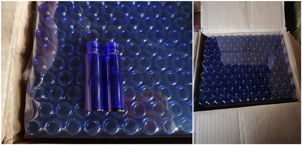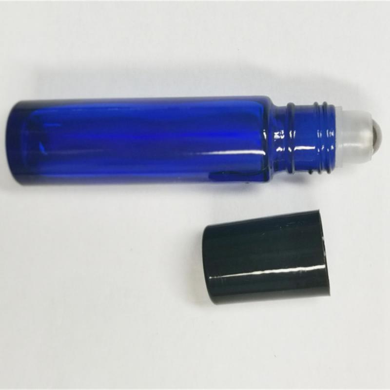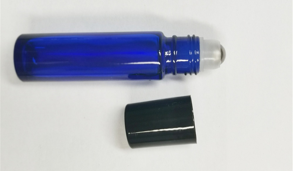 Frascos roll-on de vidro azul cobalto de 10 ml com tampa preta