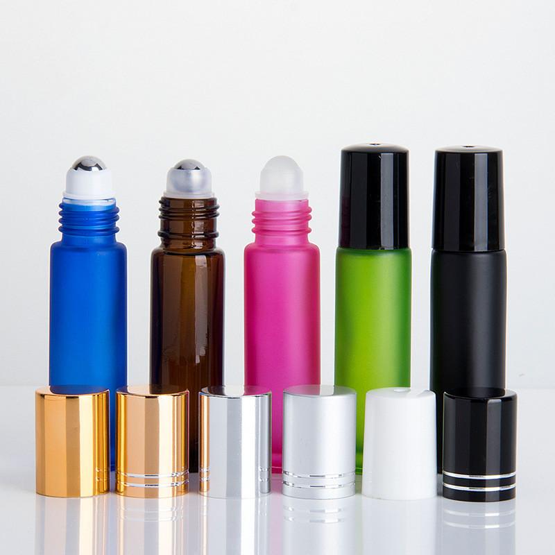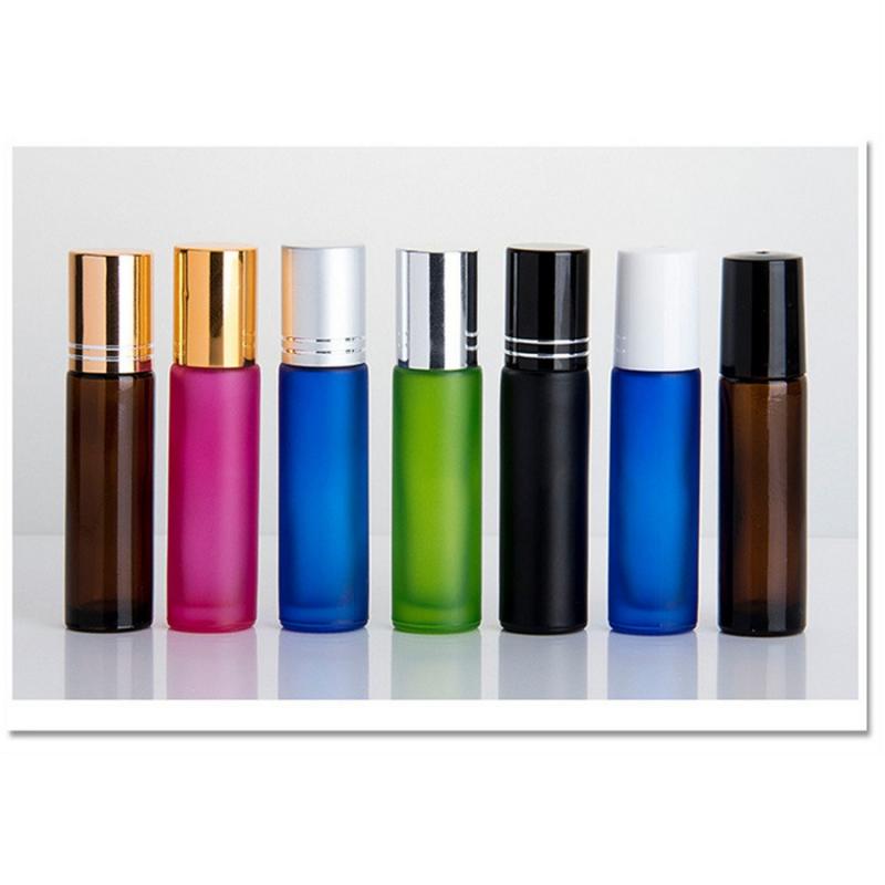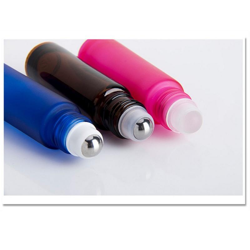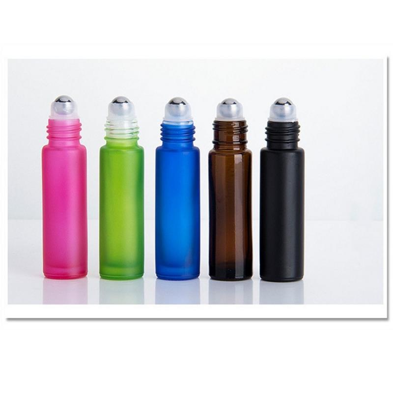 Frasco de óleo essencial fosco colorido de alta qualidade com 10 ml, com esferas de aço inoxidável, feito de vidro, livre de BPA.