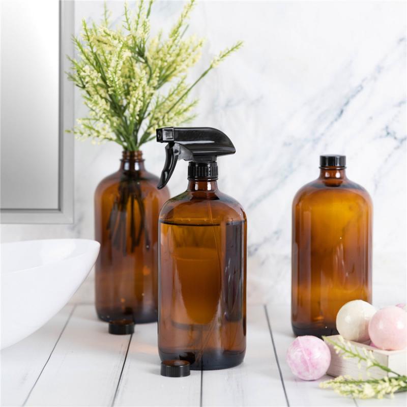 Garrafas redondas Boston de vidro âmbar de 16 oz com borrifador