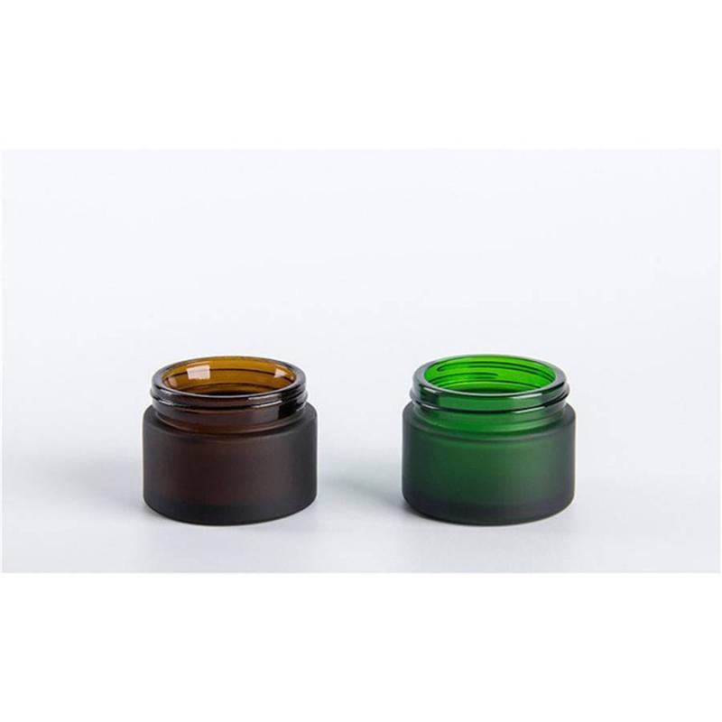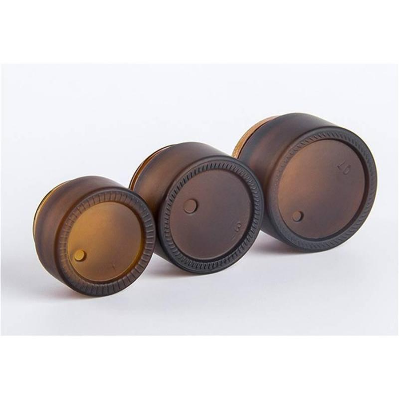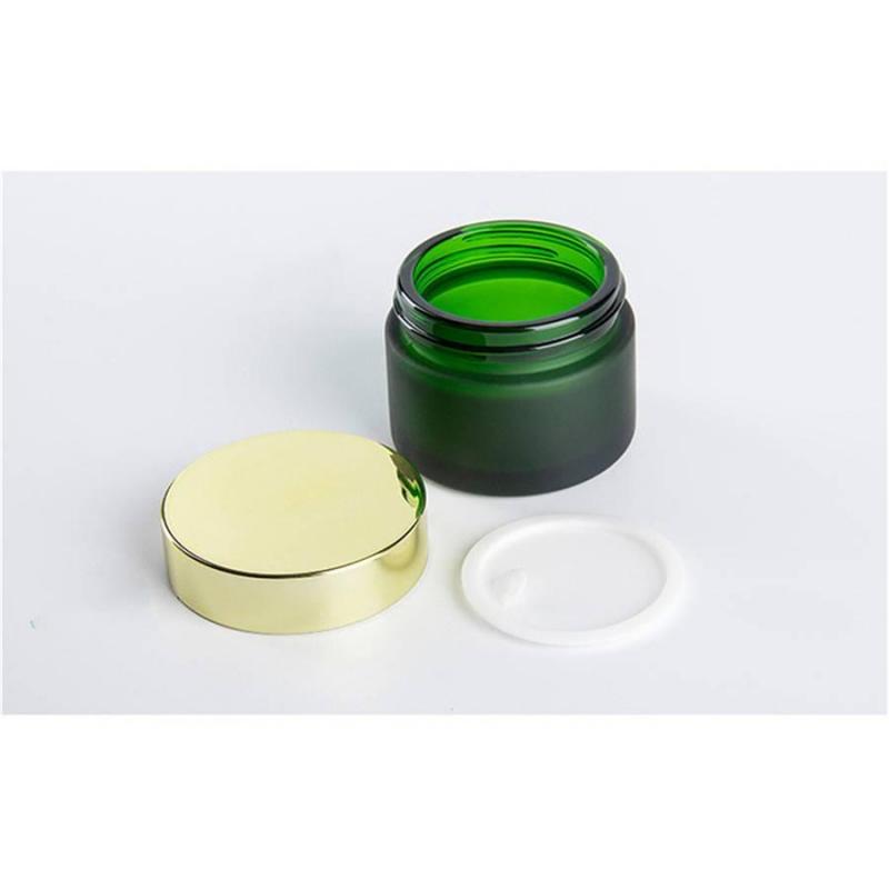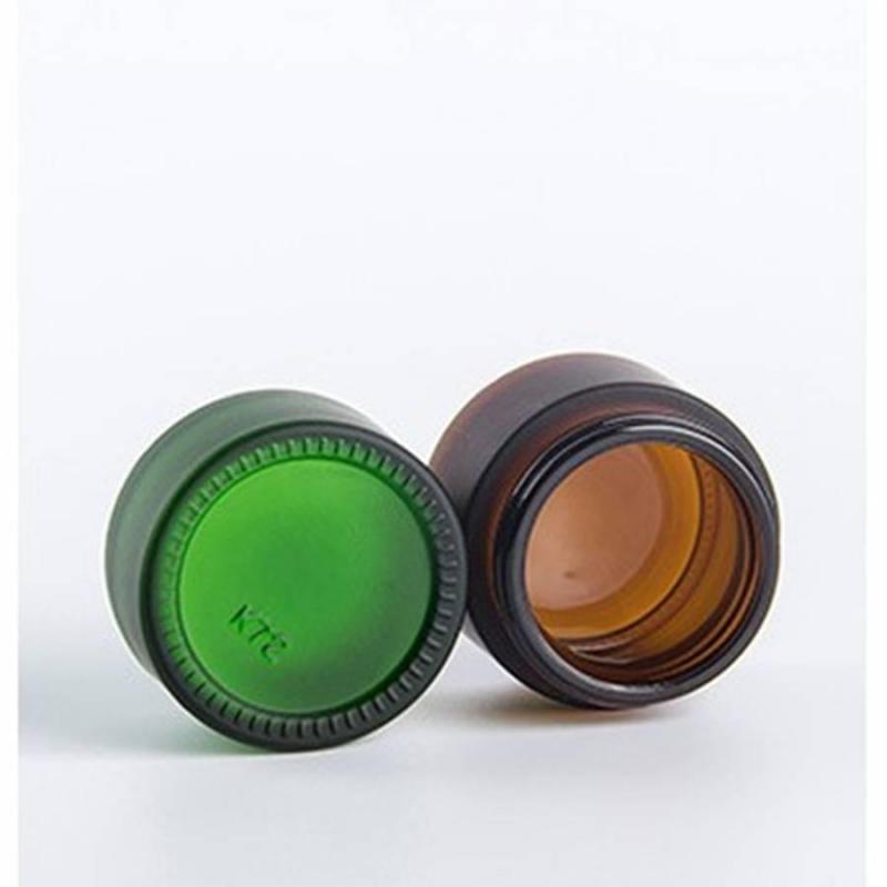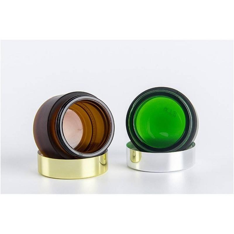 Estes potes redondos de vidro verde, âmbar e de alta qualidade são perfeitos para usar com loções, cremes e esfoliantes. Cada