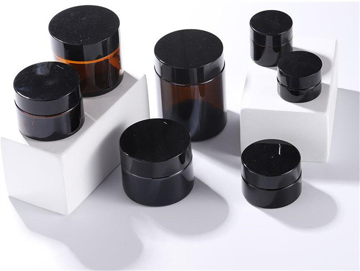 18/410Potes de vidro âmbar de 4OZ com tampas
