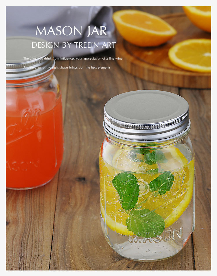 Pote de vidro de 16 OZ, lindamente embalado, tem excelente resistência a impactos, adequado para piqueniques, festas e atividades de lazer. Perfeito para artesanato, armazenamento, uso decorativo, projetos de arte e bebida Alimentos seguros