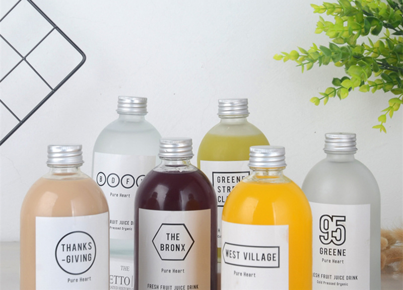 Garrafa de vidro selada para bebidas geladas, sucos e sucos de estilo nórdico, com tampa de alumínio, garrafa de café, garrafa de vinho de frutas, leite frio, garrafa de chá.
