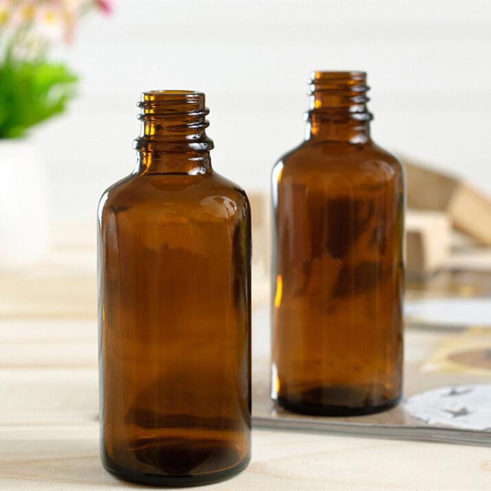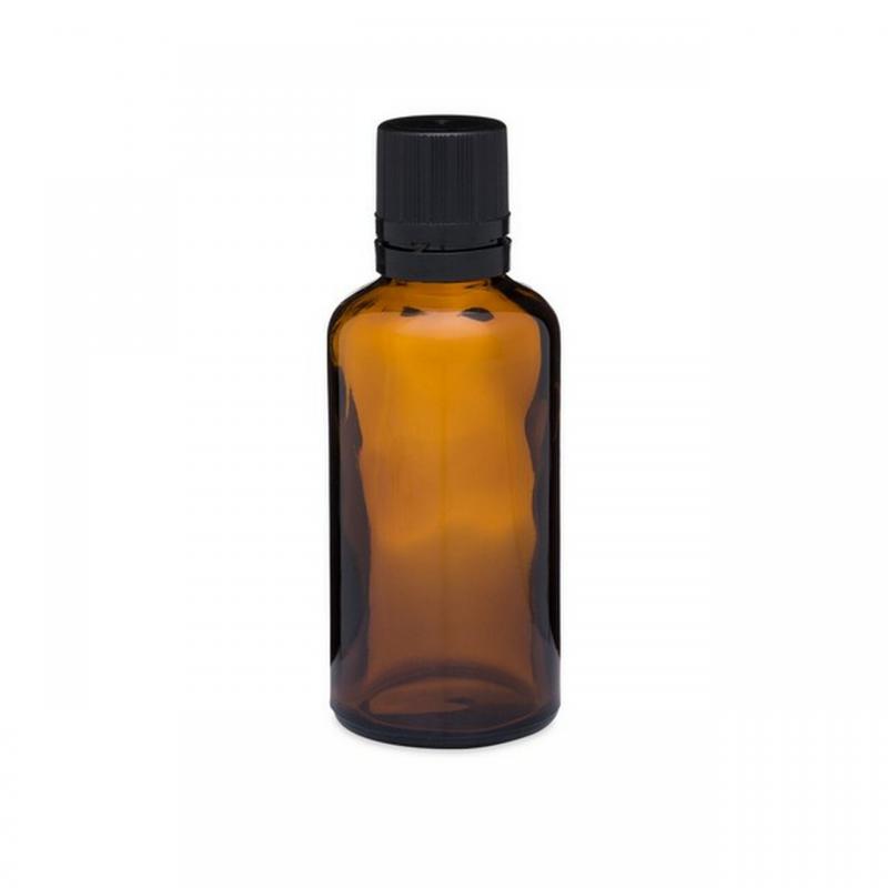 Frascos de óleo essencial de vidro âmbar de 50 ml com tampa preta