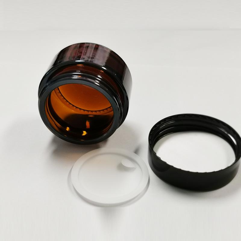 Adequado para creme facial, bálsamo, pó, loção, gel, sais de banho, etc. Frasco de vidro âmbar com arruela de puxar e tampa preta. A cor da tampa pode ser variada, como dourado, prateado, preto, azul e assim por diante.