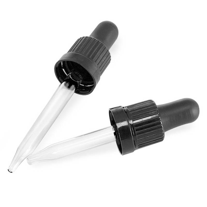 Tampa conta-gotas Euro preta de HDPE com lacre de segurança e orifício de LDPE, uma tampa de medição e distribuição precisa e completa. Este conta-gotas é perfeito para óleos essenciais, e-líquidos, produtos farmacêuticos, fragrâncias e outros líquidos.