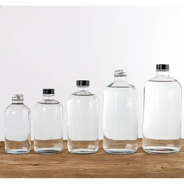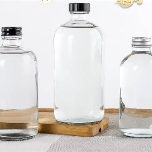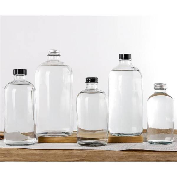 Essas garrafas de vidro transparente para bebidas podem suportar temperaturas altas e baixas, o que as torna adequadas para envase a quente ou prensagem a frio de bebidas vegetais e sucos.