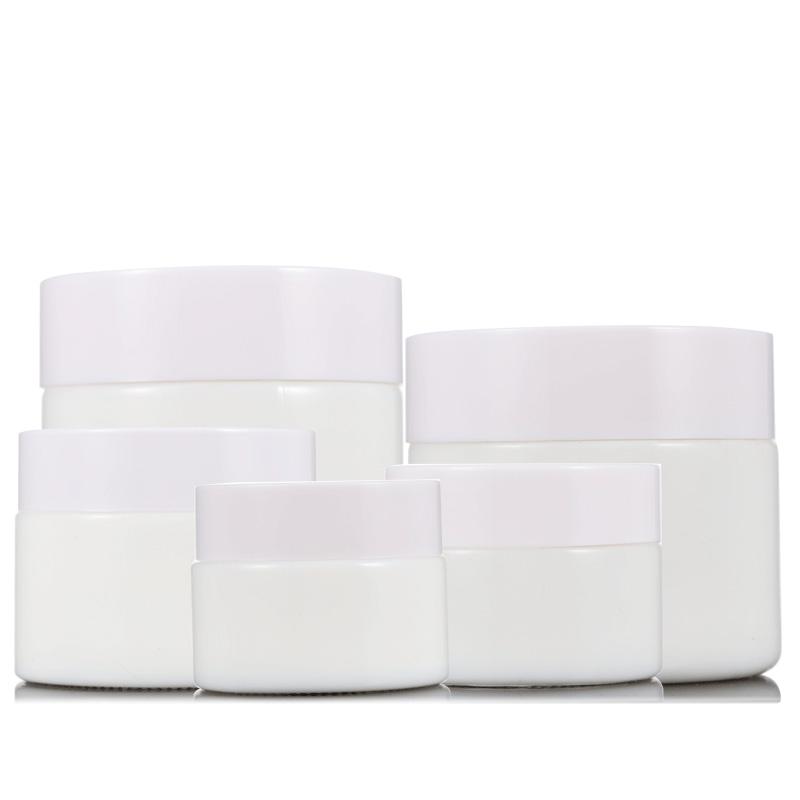 Pote de vidro fosco branco personalizado de 20G, 30G, 50G, 110G e 120G para cosméticos de alta qualidade, pomadas, temperos, condimentos e outros produtos para cuidados com a pele.